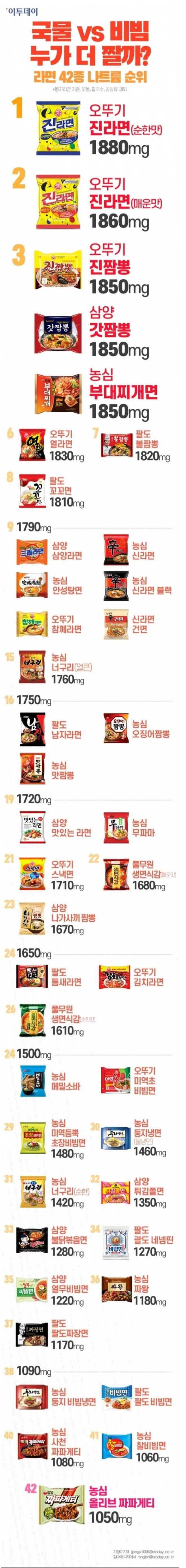 진라면 이 이렇게 나트륨이 많다니 의외네요..