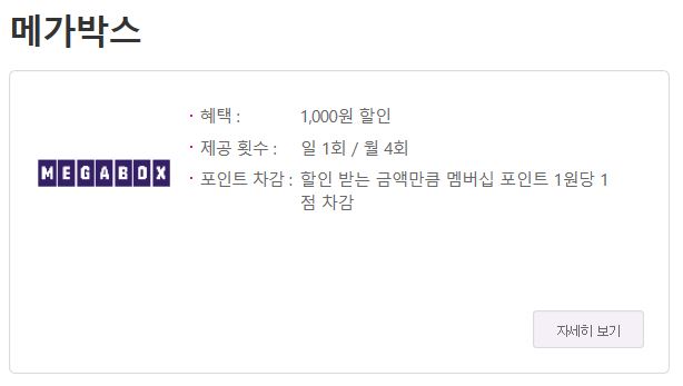 - 3D, 특별관(더부티크,컴포트, MX, The FIRST CLUB, 키즈관, EOE4,발코니M 등), 특별석(로얄석,커플석, Table Zone, 발코니M 등), 특별콘텐트, 기획전 제외
