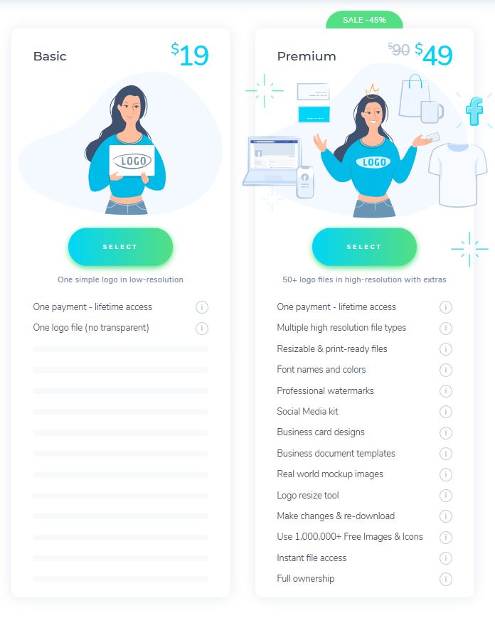 이렇게 개인 브랜딩 / 기업 브랜딩 선택할 수가 있습니다. 첨에 개인용은 무룐가?!!? 했는데 그건 아니네요... 그냥 스타일 차이 입니다 둘다 유료 끄응..