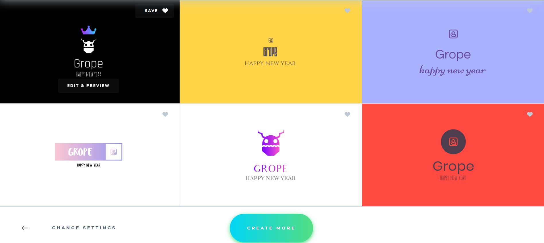 그럼 자자잔..! 뭔가 아까보다는 다른 느낌이죠? CREATE MORE 를 누르면 다른 로고를 볼 수 있습니다