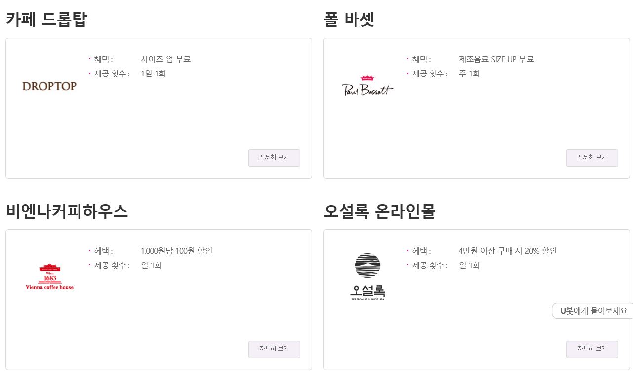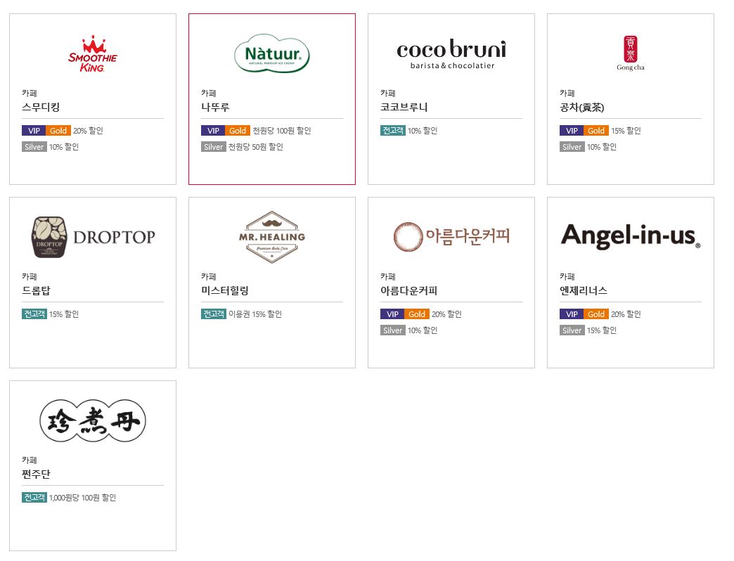 저는 카페에선 통신사 멤버쉽 카드를 안썼는데 생각보다 혜택이 많네요