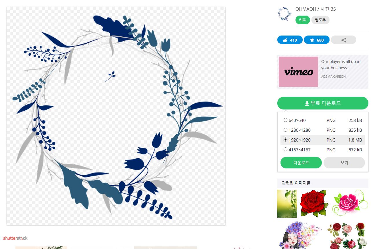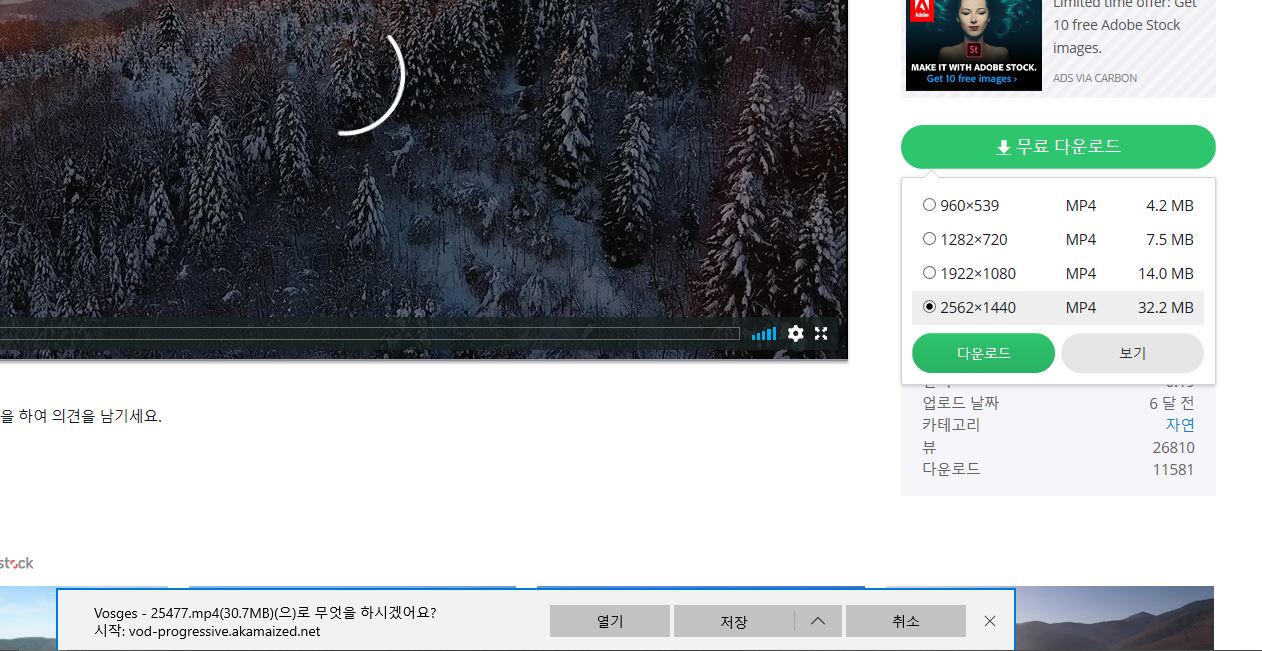 좀 치사스러운 부분이 있는데 주의하세요~ 이미지를 들어가자 마자 무료 다운로드를 누르려 마우스를 클릭하려는 순간
