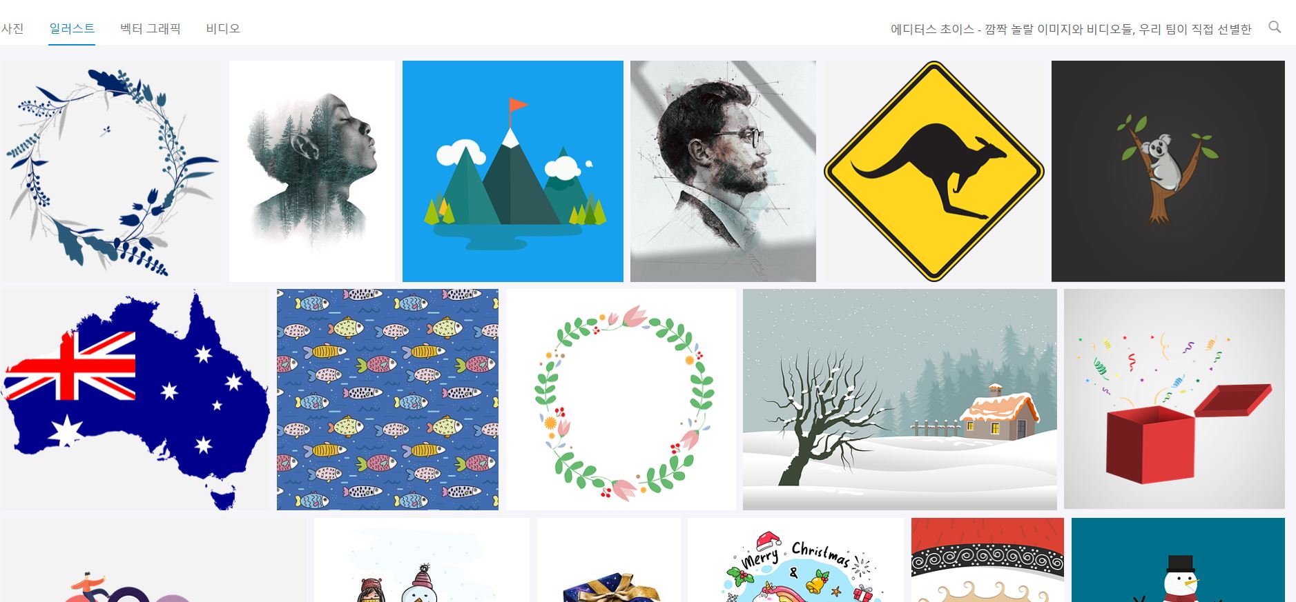 일러스트 탭에 들어가면 일러스트 이미지도 PNG로 활용할 수 있군요