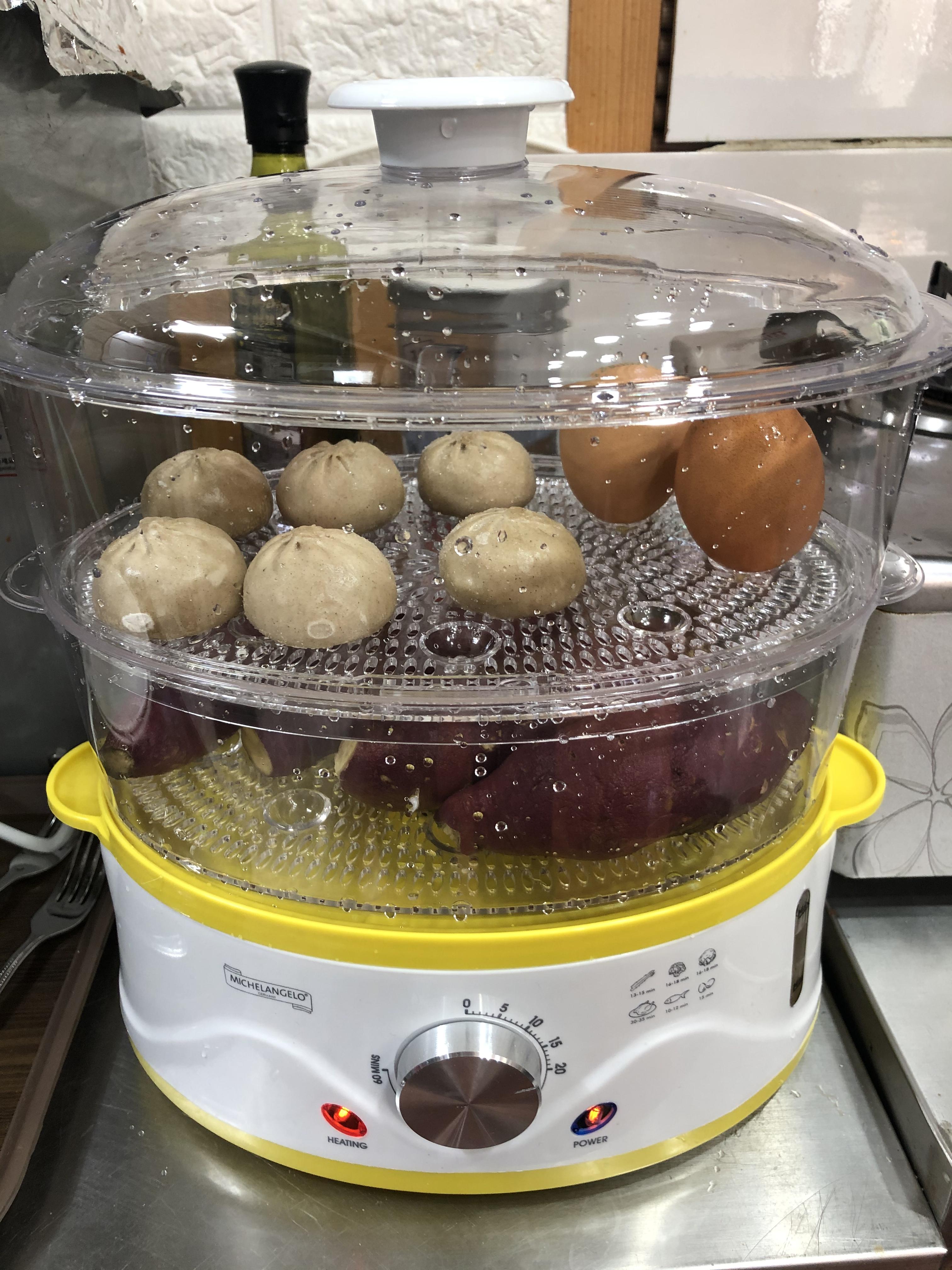 1층엔 고구마 2층엔 닭가슴살 만두와 계란을 넣어 보았습니다
