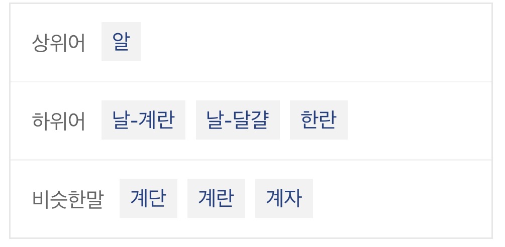 그밖에 달걀의 상위어, 하위어, 비슷한 말 입니다