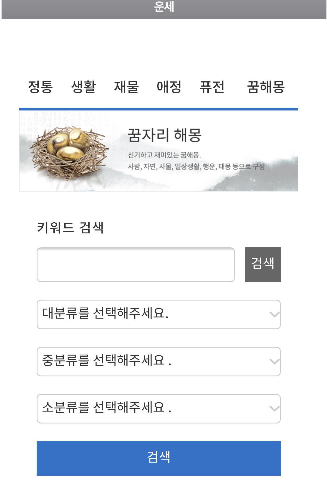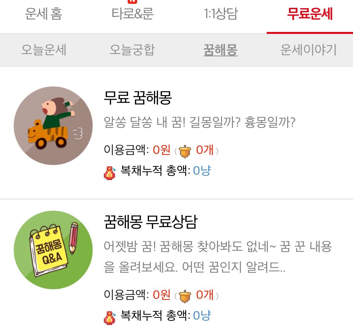 그러면 꿈해몽 탭이 꽁꽁 숨어있는데요