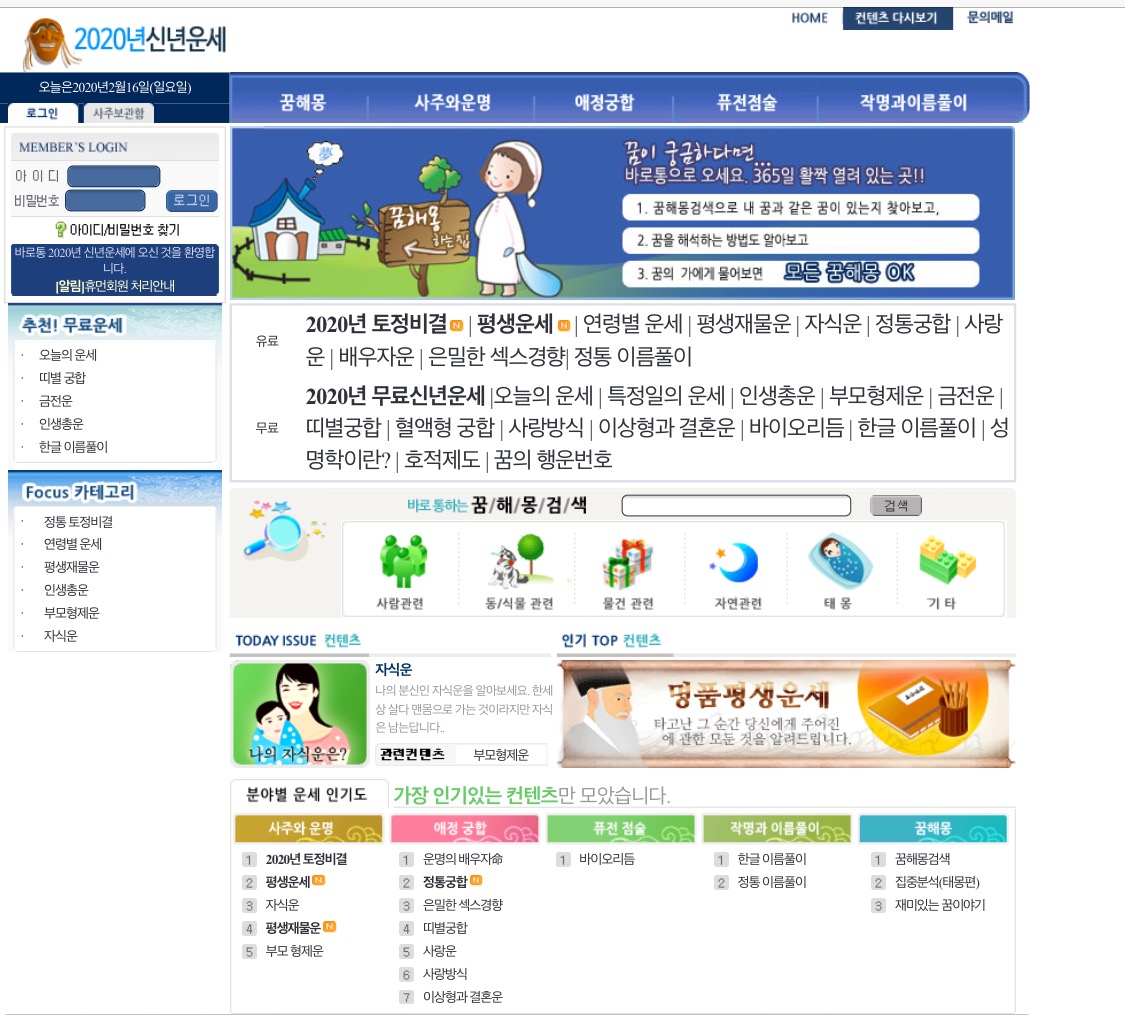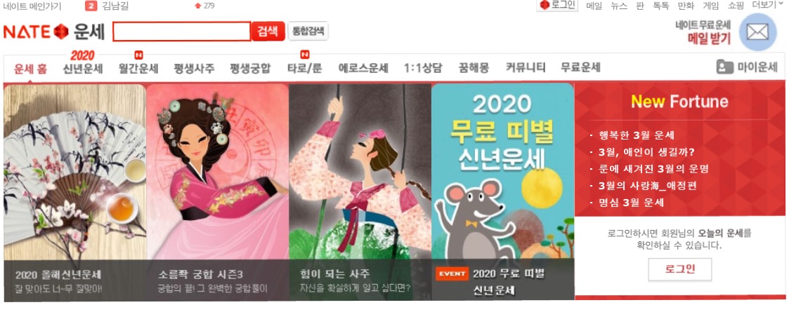 겸사 겸사 정통 운세등 다양하게 볼 수도있네요