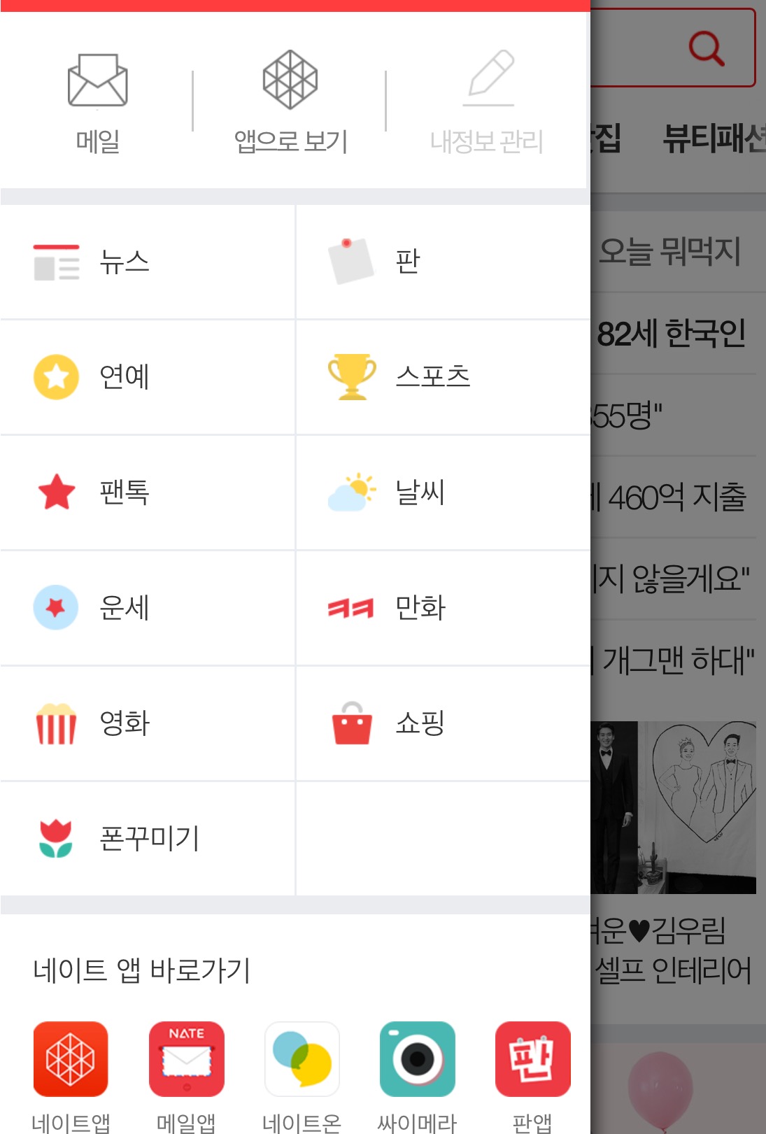 네이트도 대형 포탈이다 보니 모바일에선 UI가 다른데요