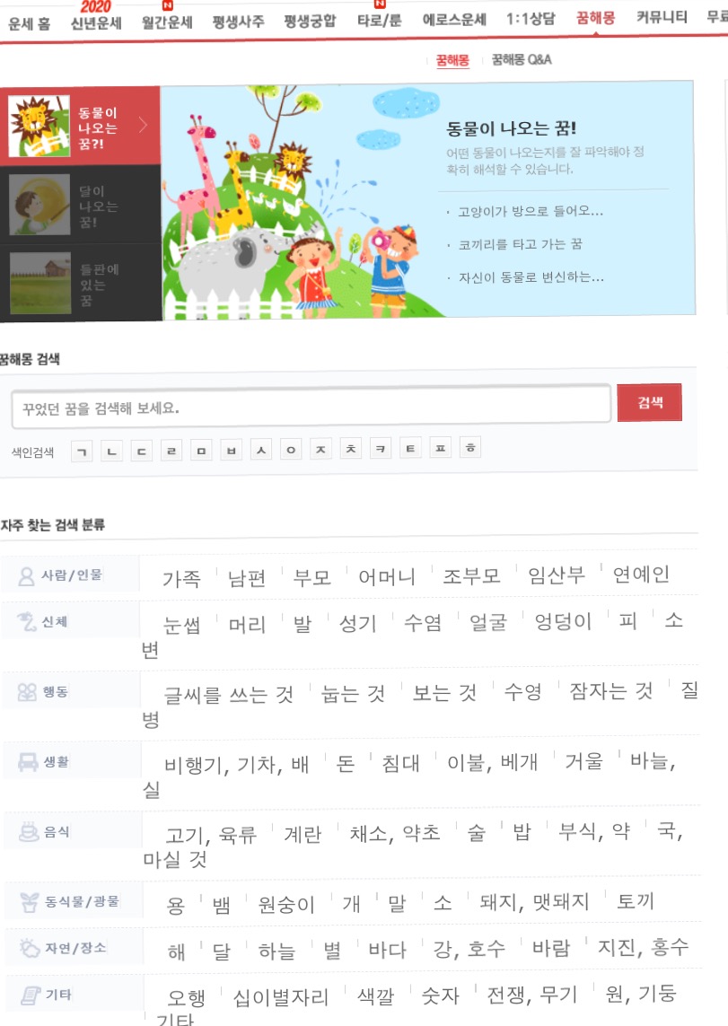 클릭하시면 띠별 꿈해몽도 나와있네요