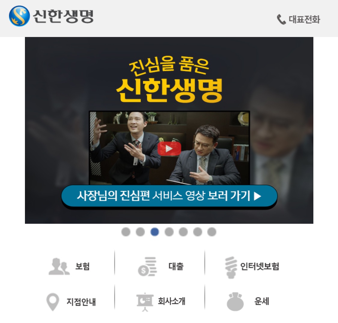 휴대폰으로 신한생명에 들어가게 되면 모바일 UI구성이 다르게 나옵니다.