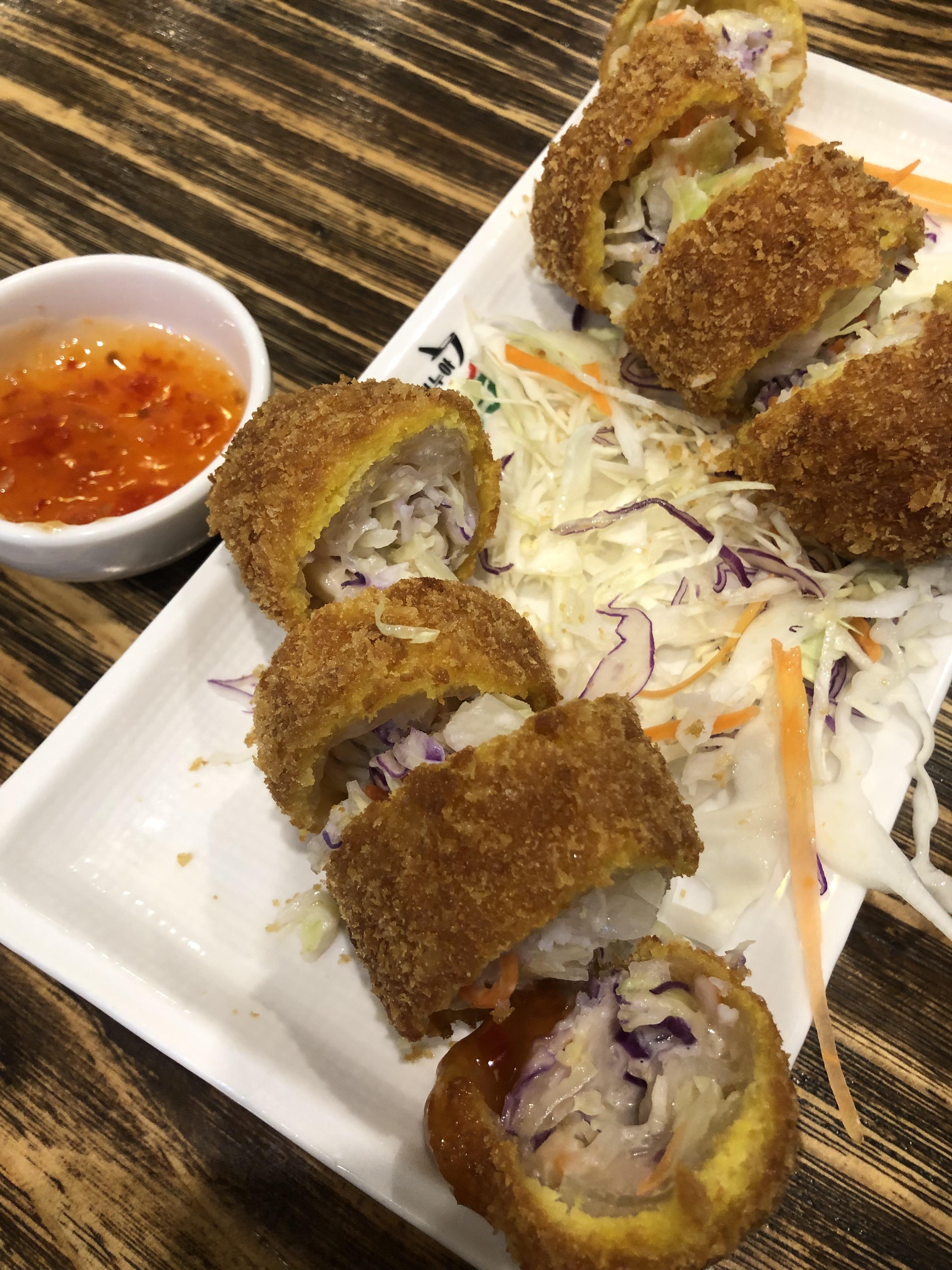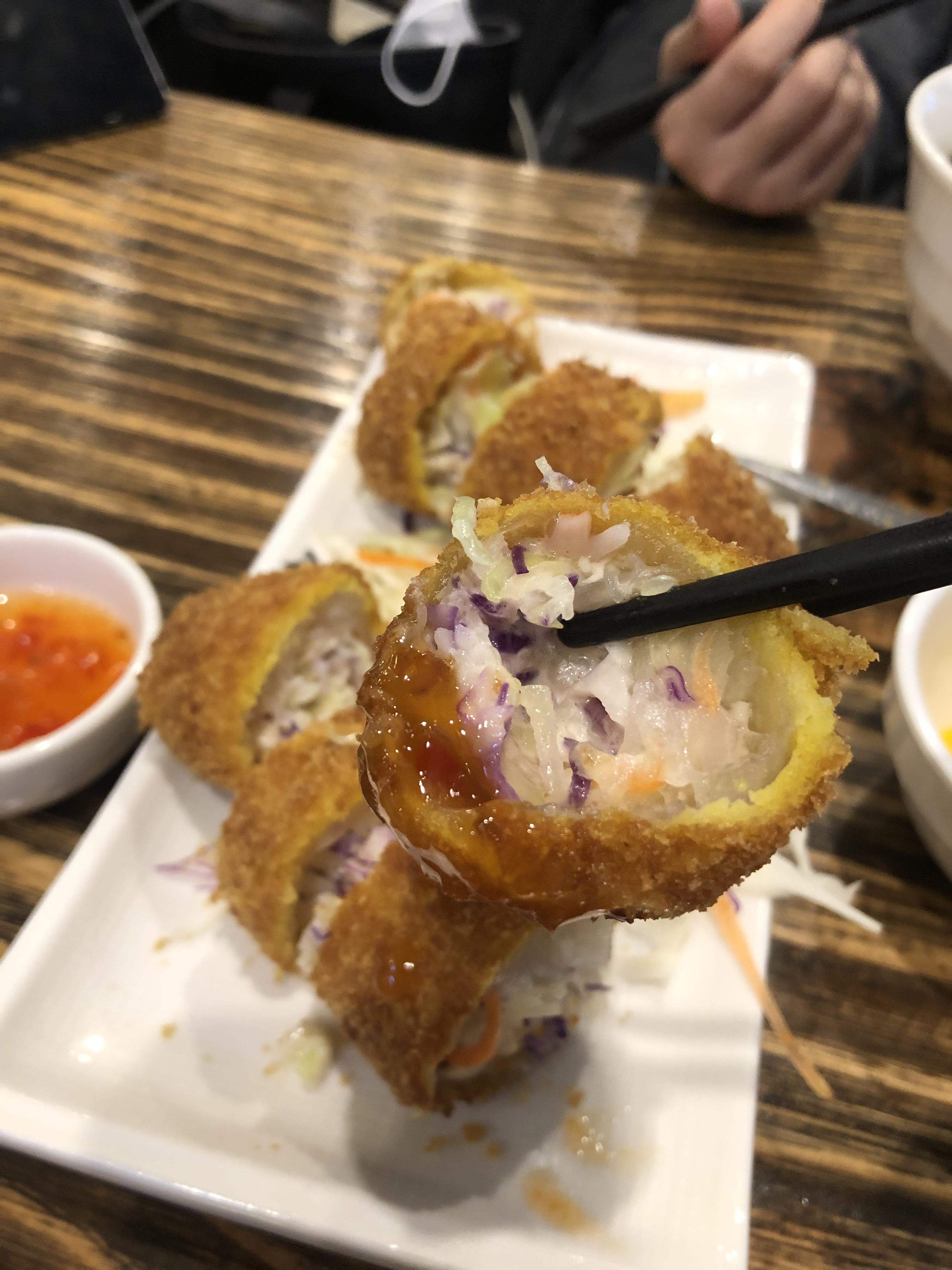 추가 사이드 메뉴는 게살라이스 롤 튀김으로 주문을 했습니다.