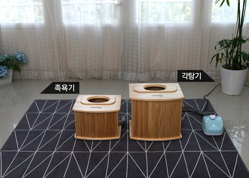 종류는 이렇게 발을 넣는 족욕기와 종아리까지 넣는 각탕기가 있고 찜질패드까지 연결된 반신욕기가 있습니다.