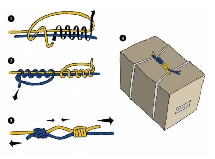 무거운 상자나 잡지 등을 묶을 때 선의 길이가 충분하지 않는경우라면 유니 매듭으로 선을 연장할 수 있다. 선과 선을 감싸는 고리 는 최소 3~4번 회전시켜야 한다. 회전 고리가 많을수록 더 큰 힘을 견딜 수 있습니다.