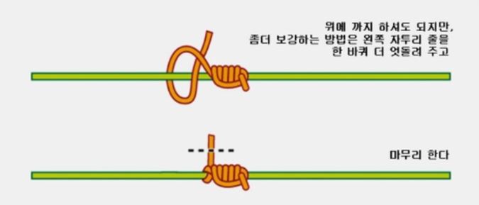 5초 안에 묶을 수 있는 간단한 매듭법이지만 두 줄을 강하게 결 합할 수 있는데요
