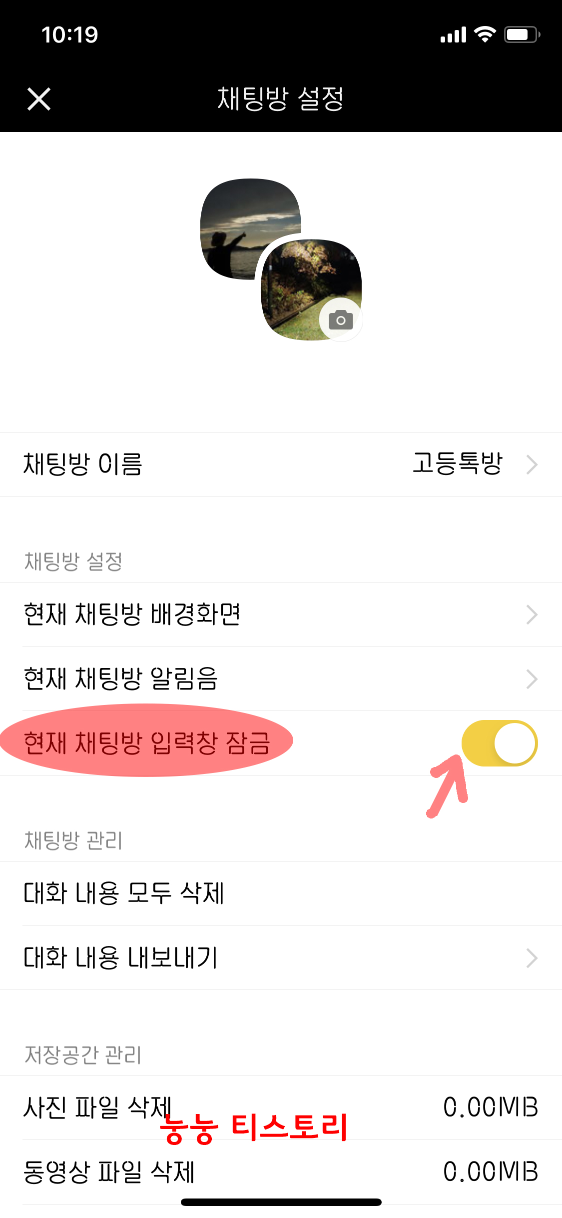 3. 그런 다음에 채팅방 설정 부분에 "현재 채팅방 입력창 잠금" 이라는 탭이 있는데요.
