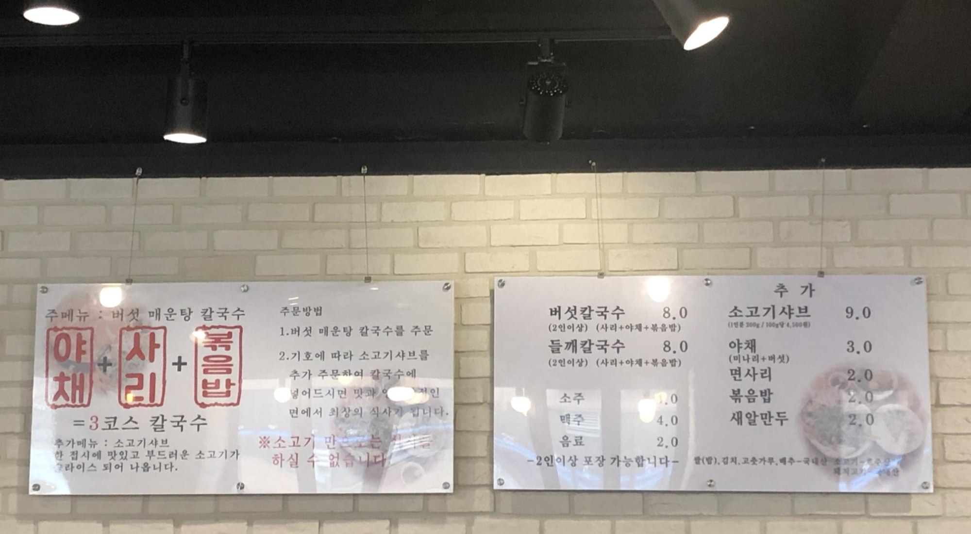 버섯칼국수 2인(16000원) + 소고기 샤브1인 추가(9000원) + 볶음밥 (2000원) = 27000원...어라?!