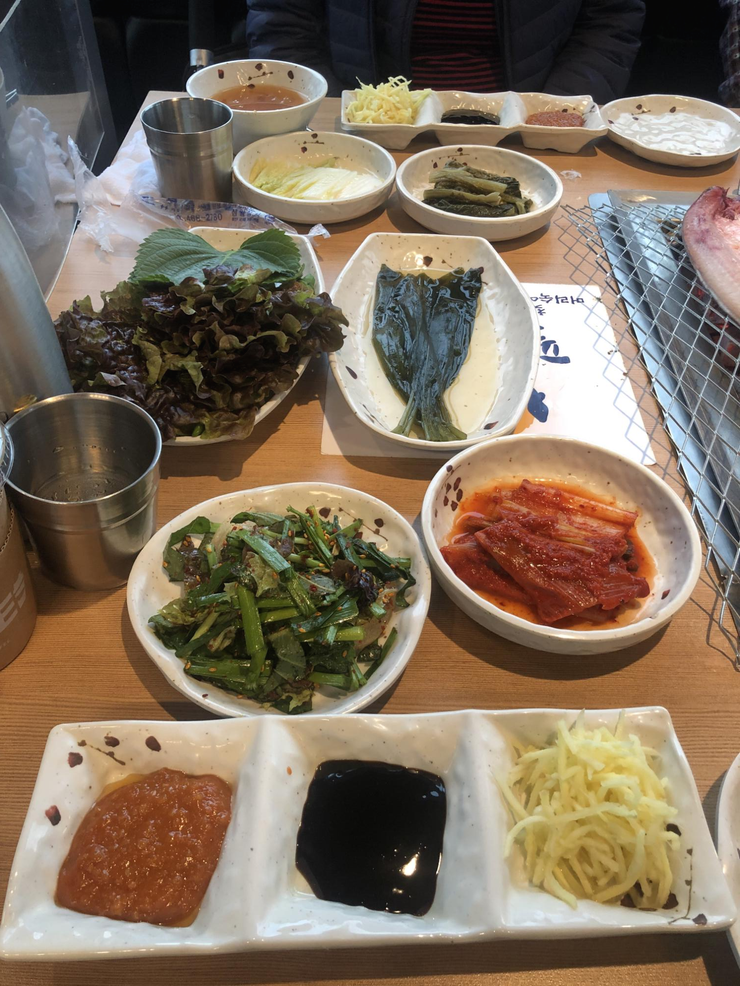 장어식당에 빠질 수 없는 쌈과 명이나물 그리고 김치등이 보이네요.