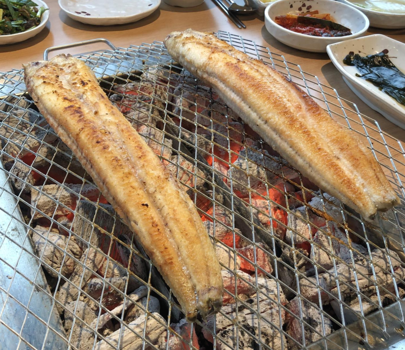 두근 드디어 장어 1.5Kg이 불판위로 올라 갔습니다. (추후 500g 더 시킨건 찍지 못했네요)