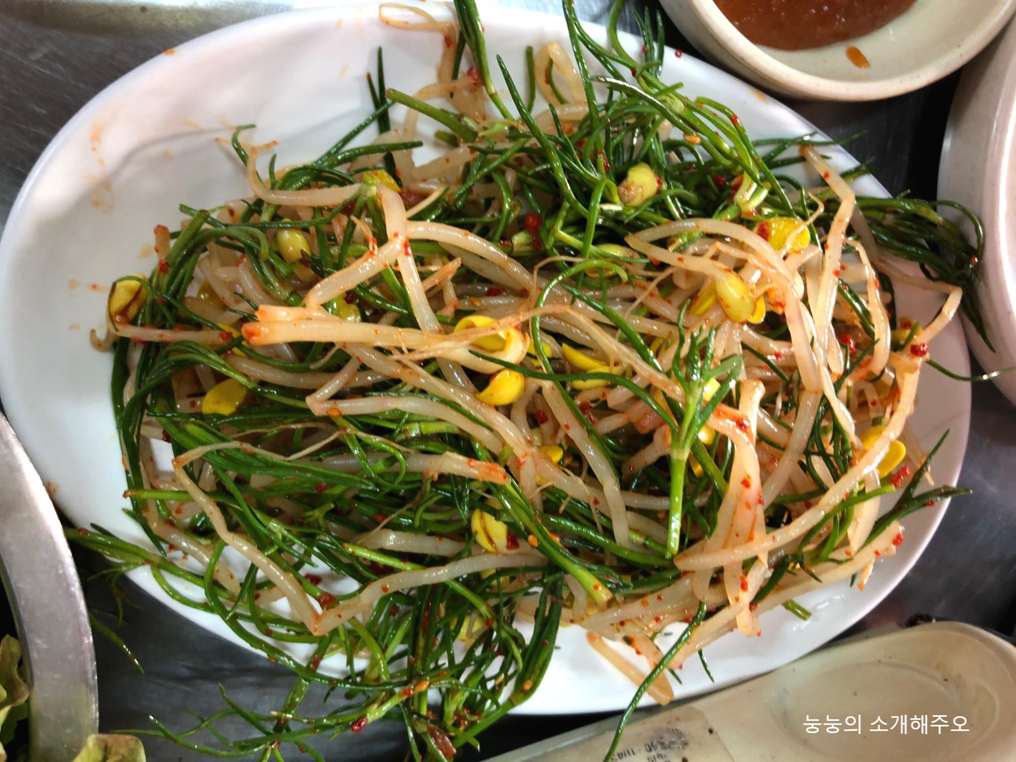 어우 일단 콩나물 무침 이거 곱창이랑 먹기 최고의 반찬이죠