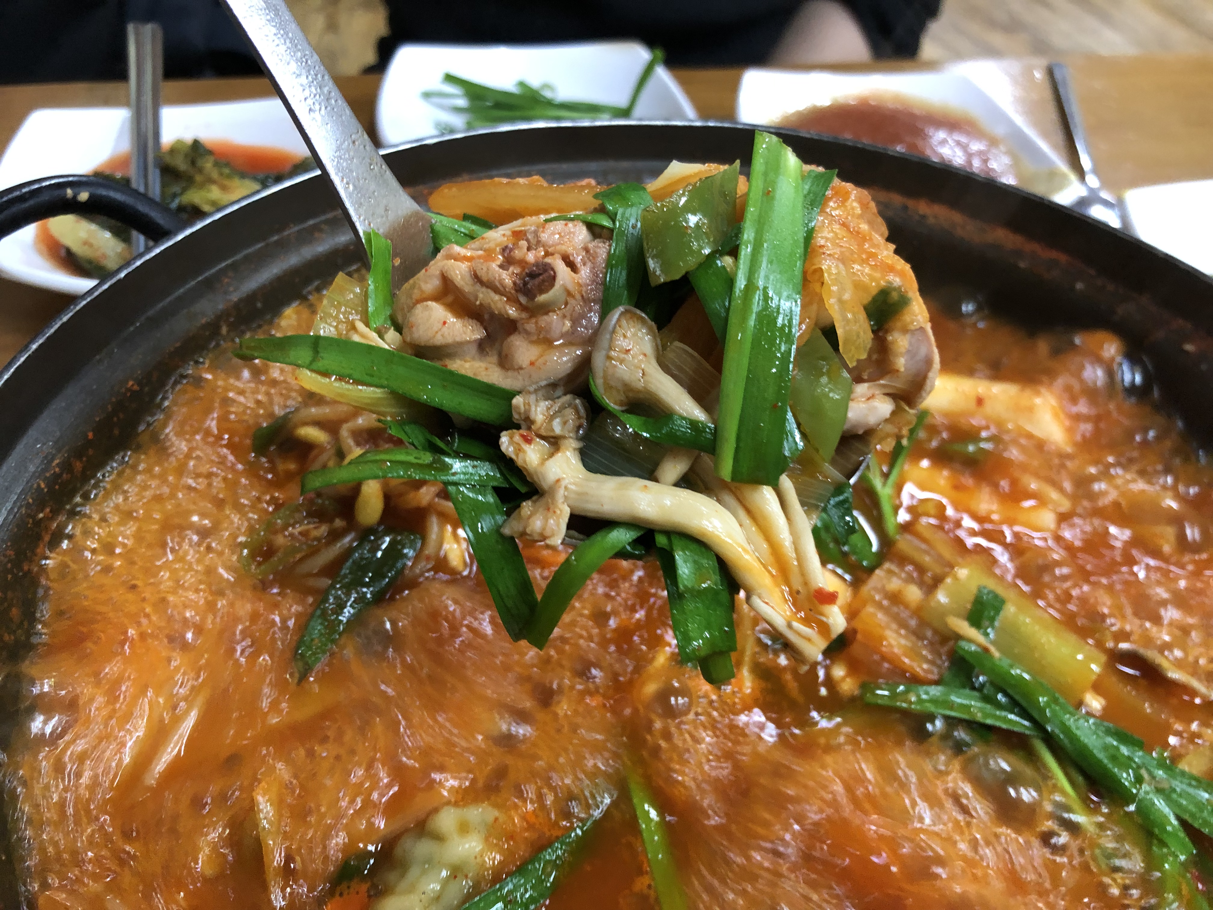 닭한마리 기본은 맑은탕인데 저는 얼큰 매콤한게 끌려서