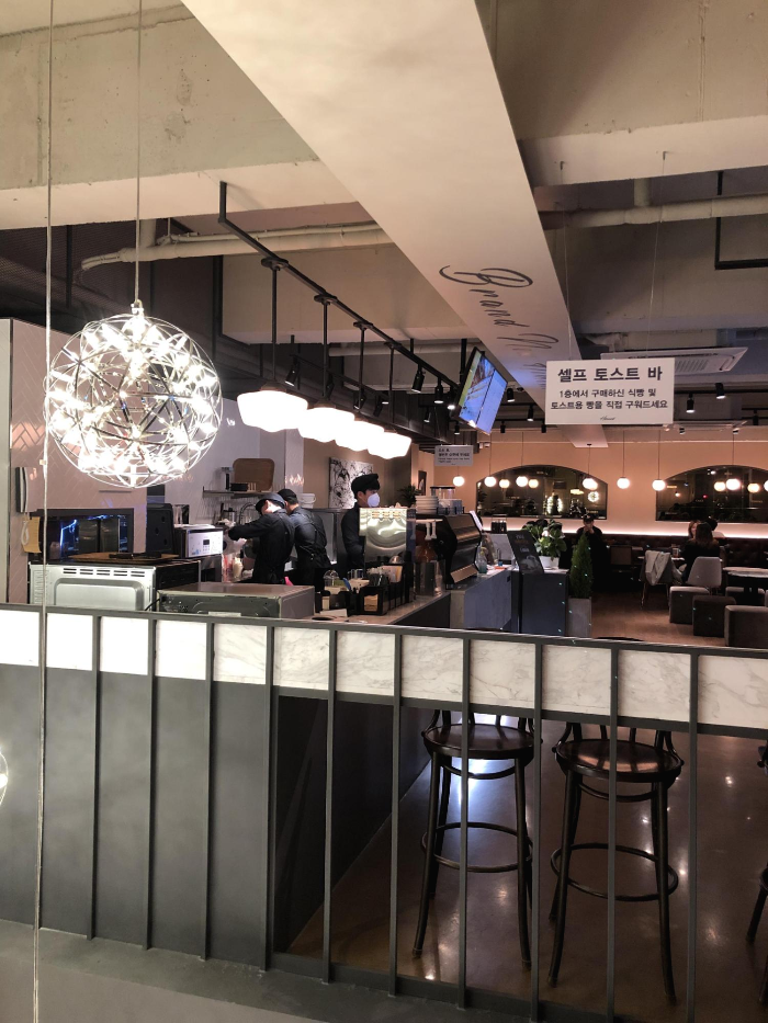 아래를 보면 아까 빵을 구매하고 주문한 1층이 보입니다.~!