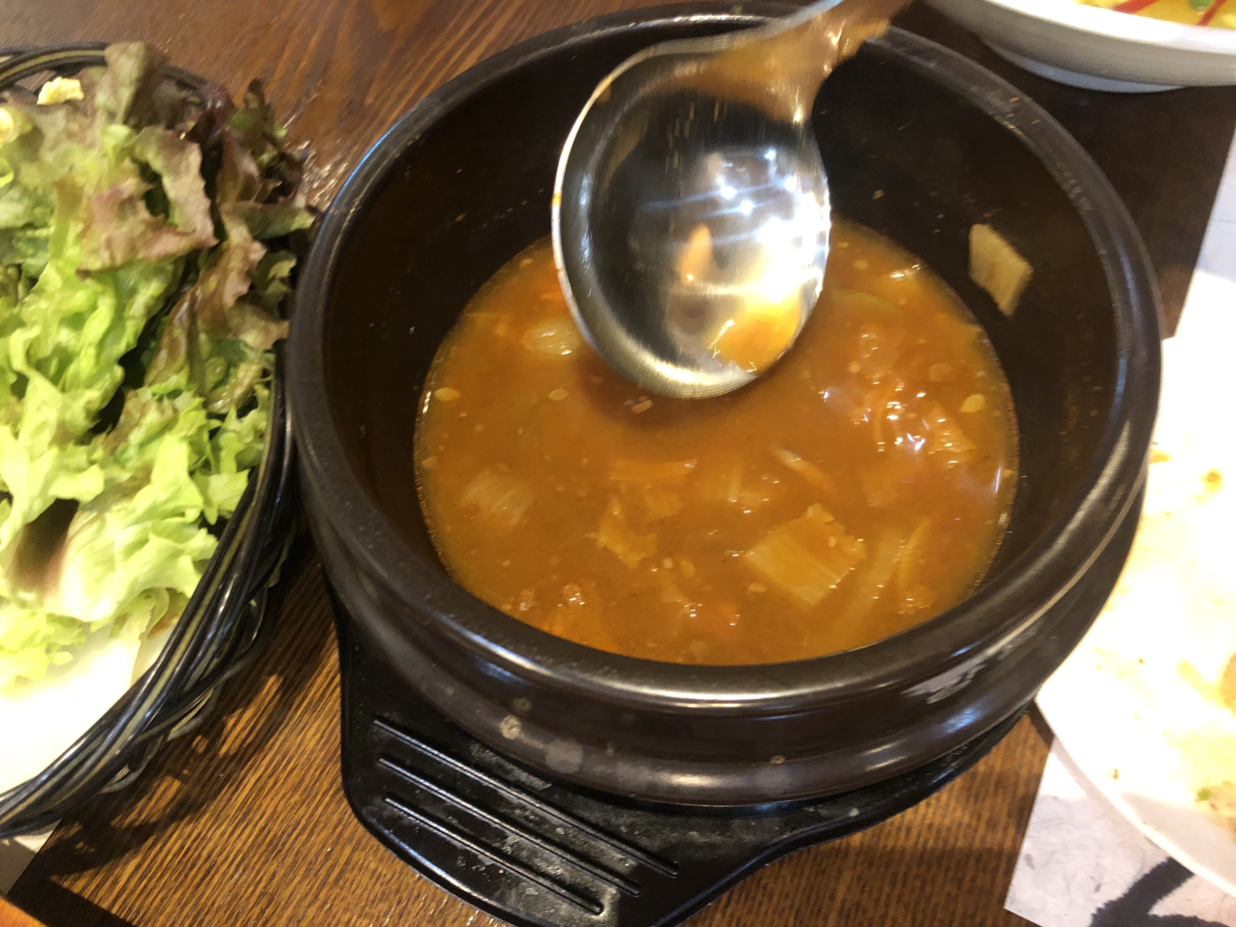 된장찌개였는데 다 덜어낸 다음에 남은걸 찍었네요 - _ -;;; 퍼기전 사진이 어디갔지...