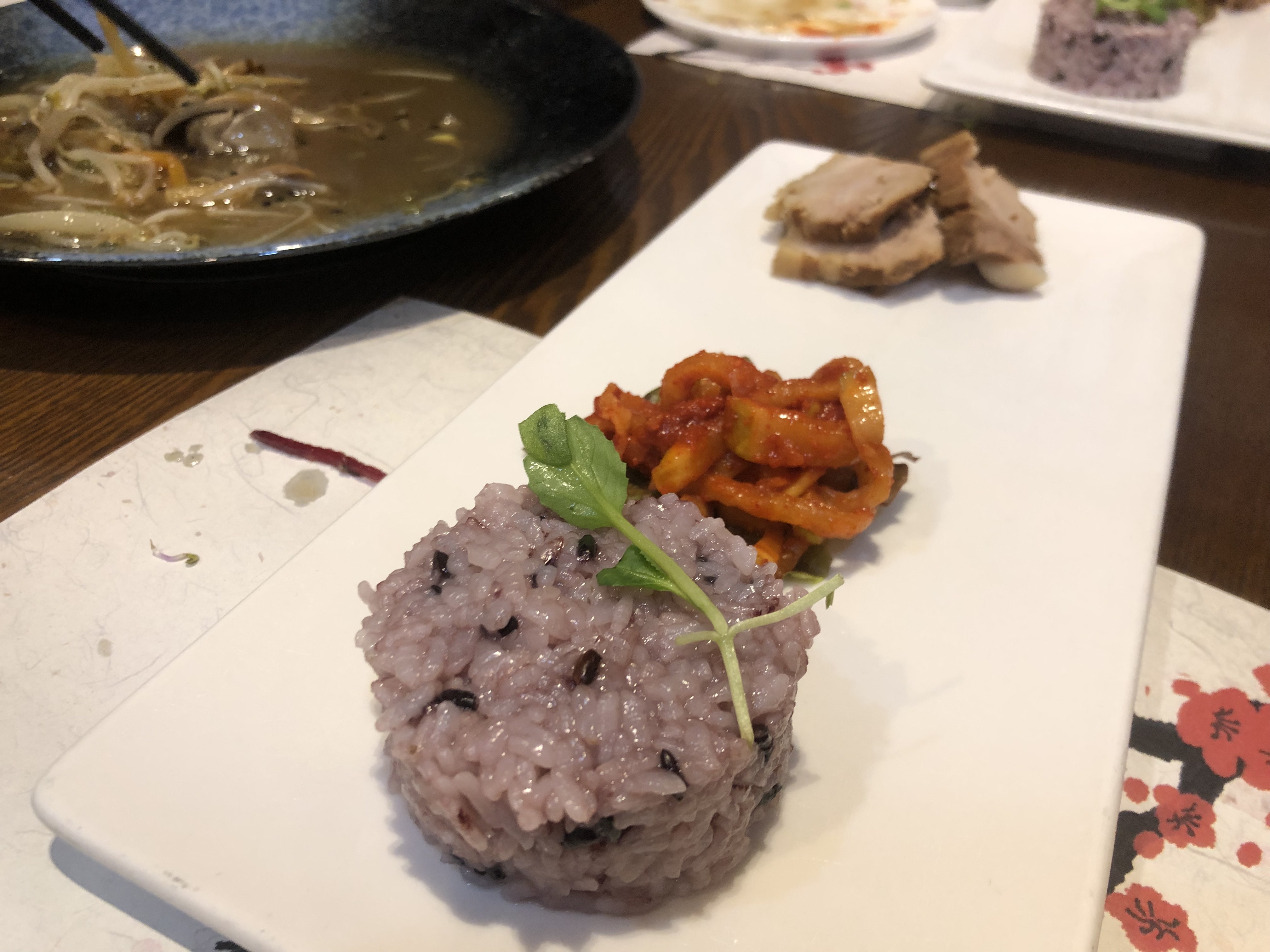 마지막 흑미밥에 보쌉몇점입니다. 상추와 깻잎에 싸드시면 됩니다.