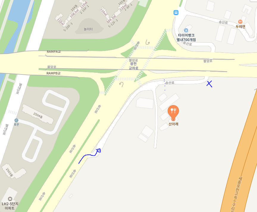 제가 지도에 그린 것처럼 저렇게 들어가셔야 합니다