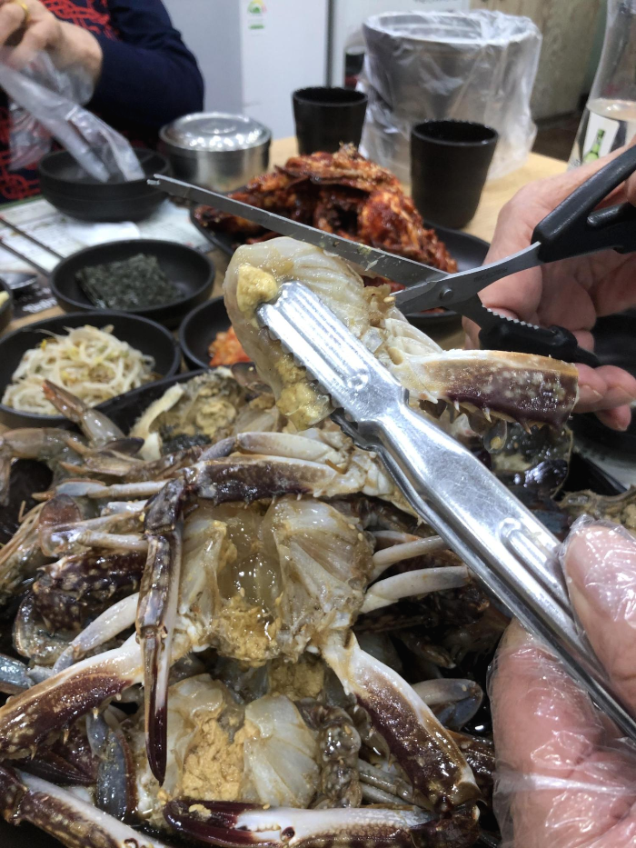 게를 자르기 쉽게 게 커팅전문 가위가 준비되어 있네요
