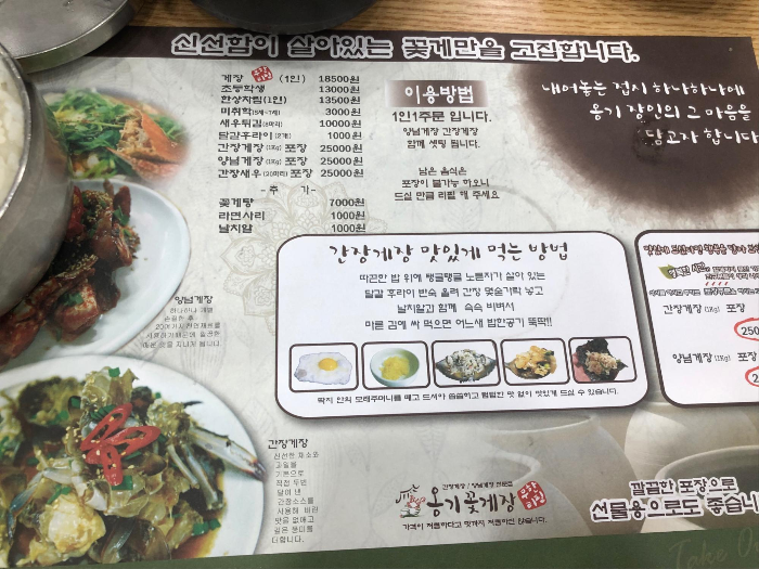 그리고 1인 1주문이 필수이고 양념게장, 간장게장이 함께 셋팅 된다고 써있네요