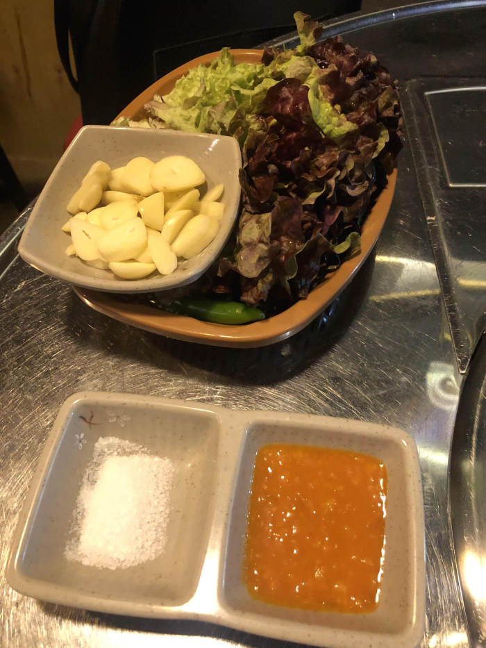 소금이랑 쌈장 쌈채소등이 나옵니다~