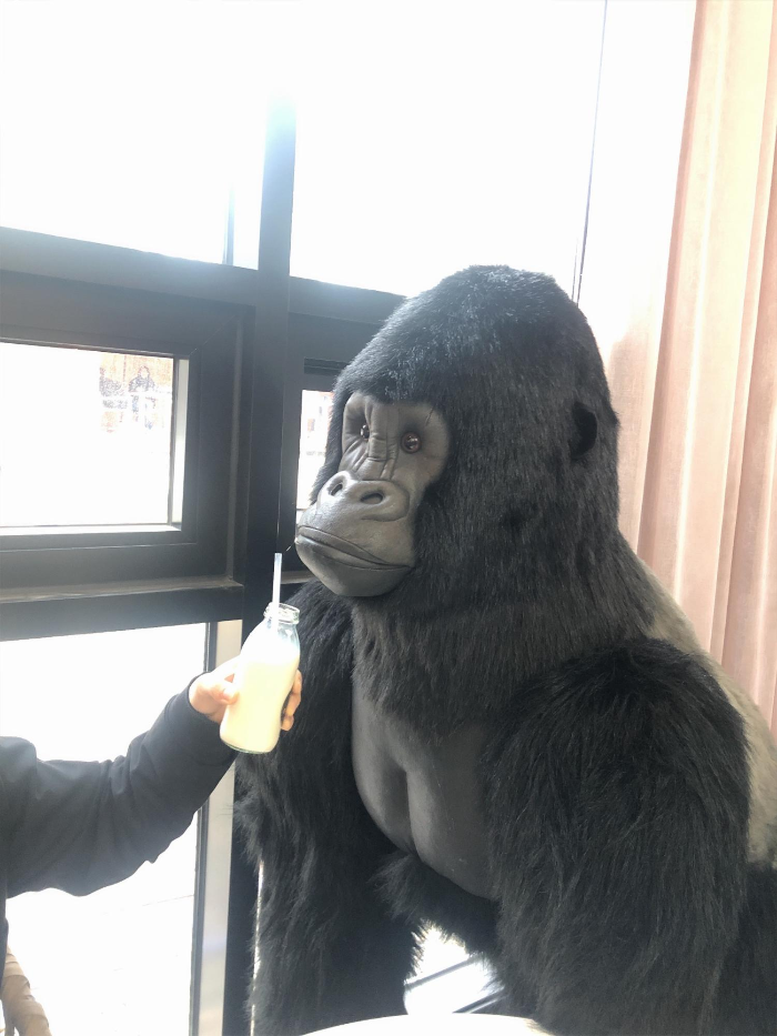 제 자리 바로 옆에 고릴라 녀석이 있길래 음료를 나누어 마셨습니다~
