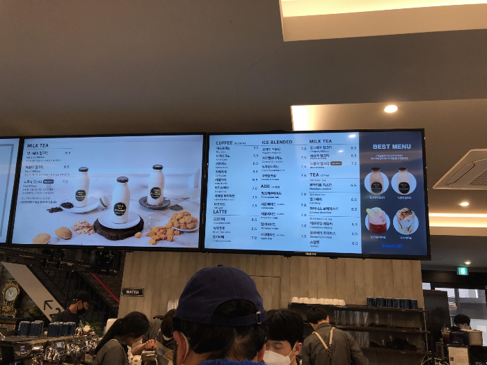 코로나 때문에 직원분들이 다 마스크를 쓰고 계시군요~