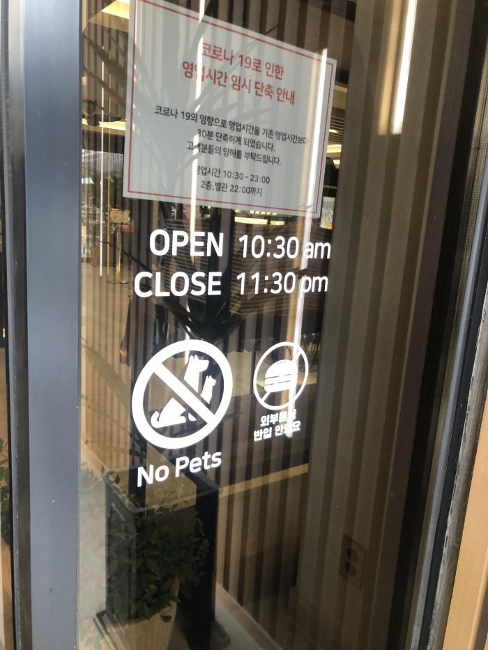 11:30~23:30분까지 운영을 했지만 코로나로 인해 23시까지만 영업한다고 하는 군요