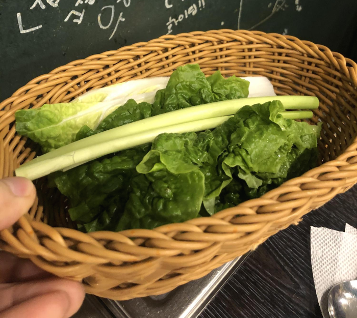 요렇게 쌈을 주시는데 구성도 독특하고 싱싱하니 맛있습니다.