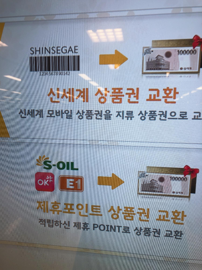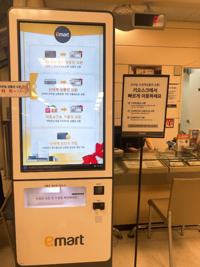 카드를 넣고 포인트를 상품권으로 교환할 수도 있으며 구매한 영수증을 신세계 포인트로 적립도 가능하네요