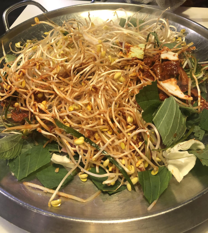 슥슥 불판에서 볶아지는 곱창과 푸짐한 콩나물 고기와 떡들이 침샘을 자극합니다 흐흐