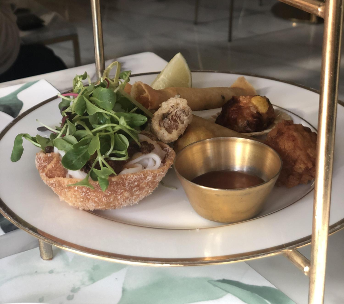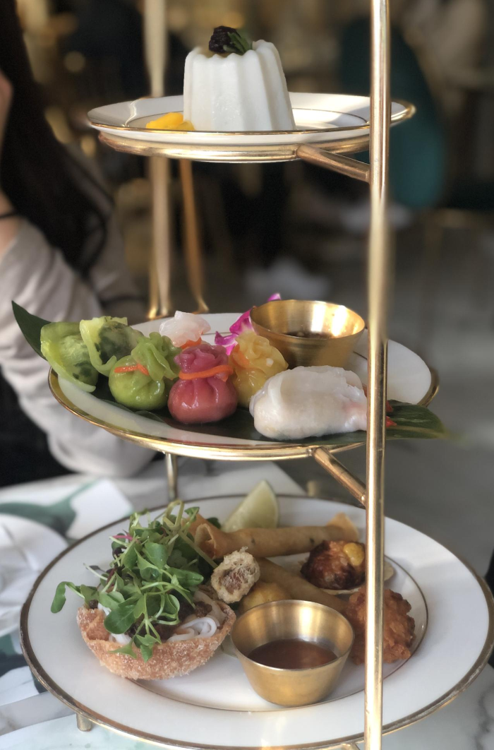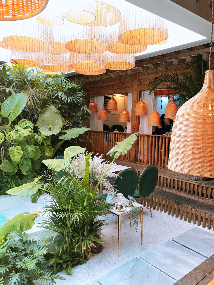 열대 식물과 멋진 샹들리에게 식사하는 내내 눈을 즐겁게 해주었습니다.