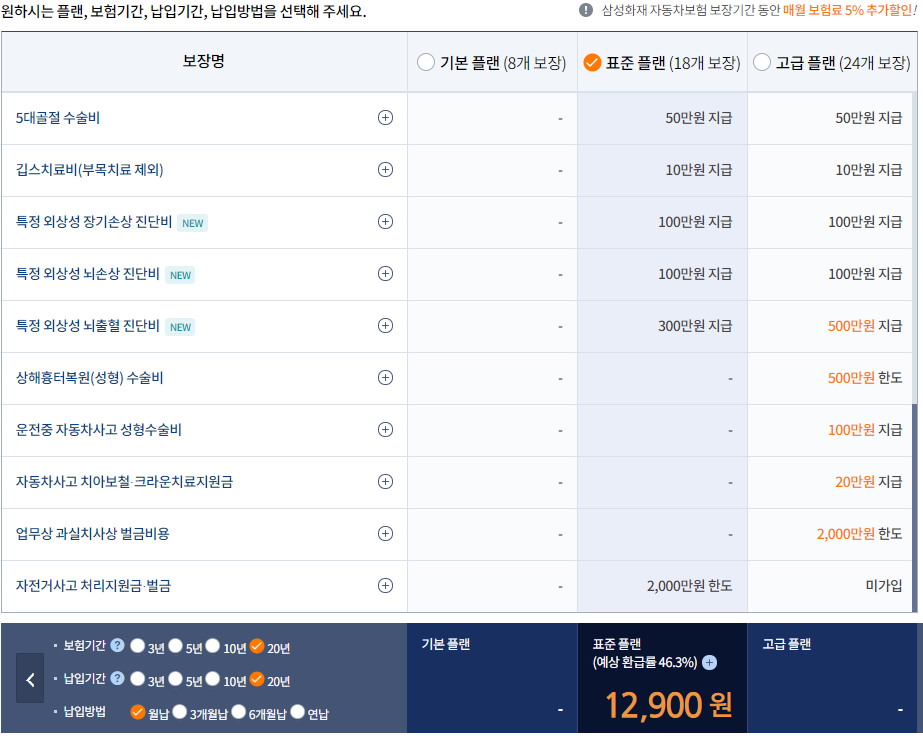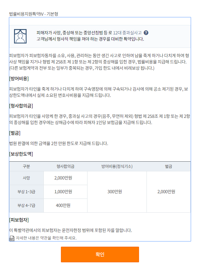 고급형은 업무상 과실치사 지원이 메인인거 같은데 저한테는 필요 없는 것 같아서