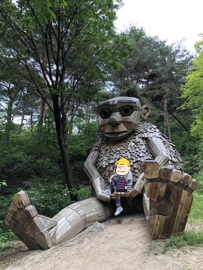 그래서 슥슥 대충 지나간 뒤에 아쉬운 마음으로 이 곳에도 있는 거대 나무 인형과 함께 사진 한방 찍었습니다.