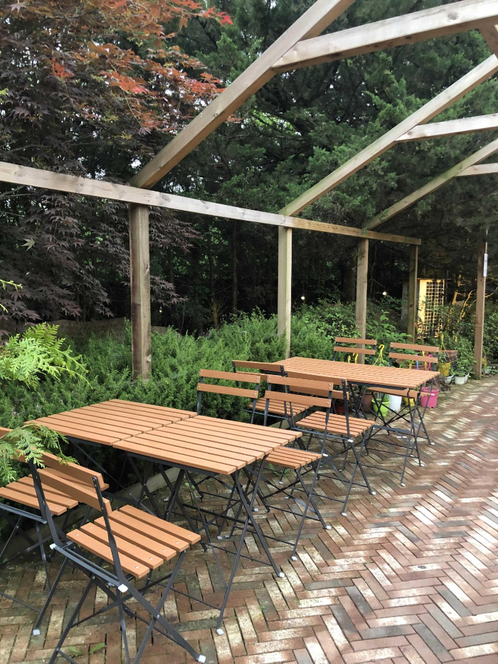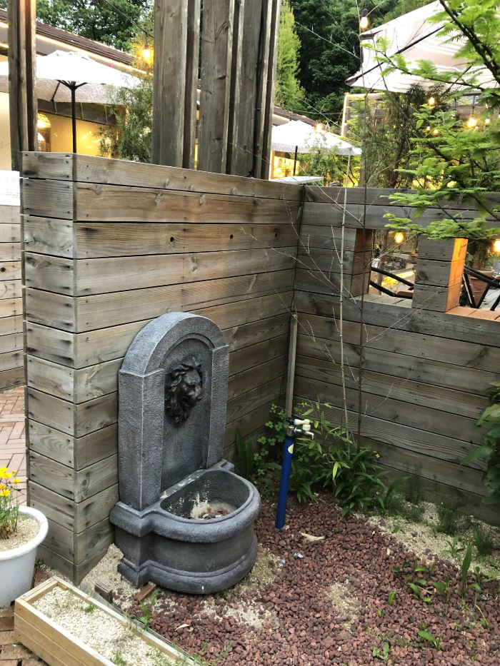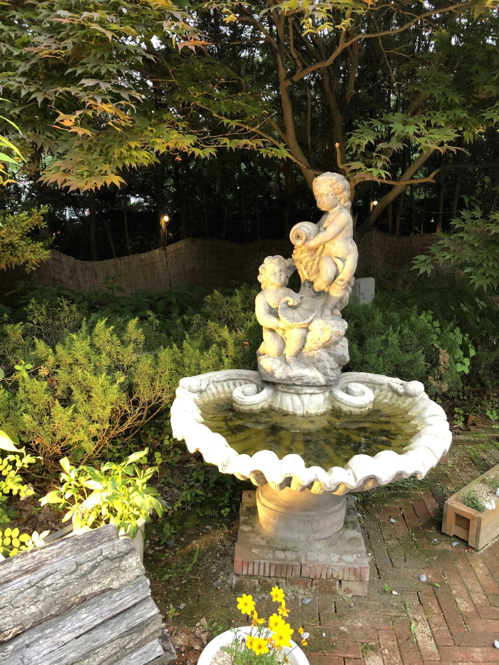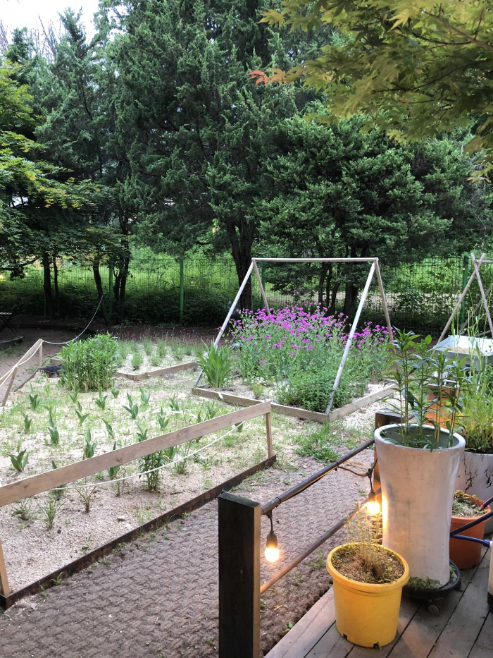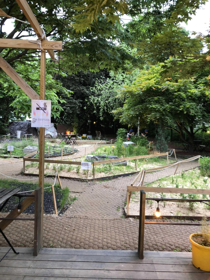 뒷문쪽으로 나가면 테이블이 또 있고 우측에는 정원도 있는데요