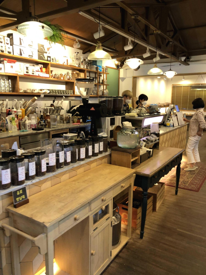 전체적으로 요목 조목 테이블이 많네요 이쪽 테이블은 길목이라 안쪽으로 앉아야 겠다 싶었어요