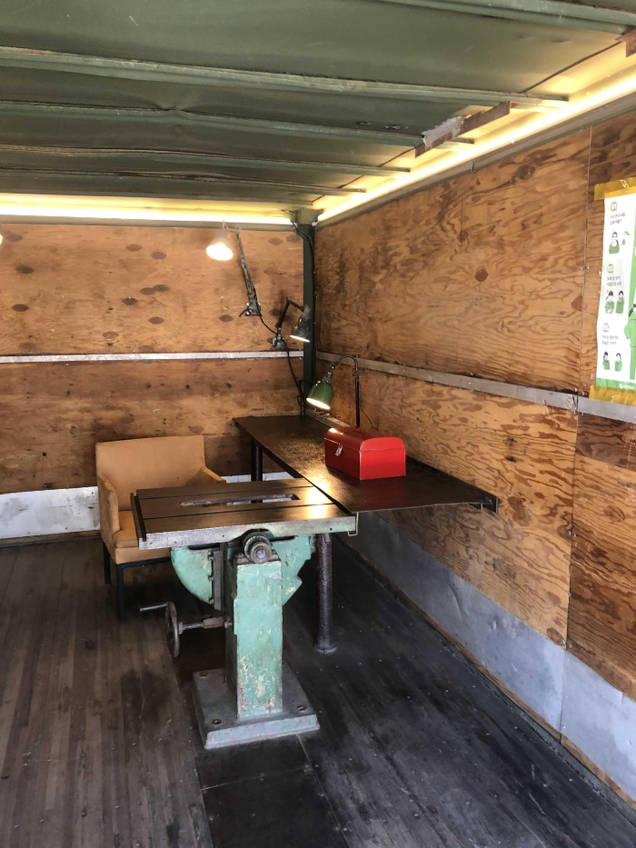 방직기계가 있던 기다란 작업대는 자연스럽게 앉아서 커피를 마시는 테이블로 리모델링 하면서 더욱더 멋스럽게 탄생 되었는데요.