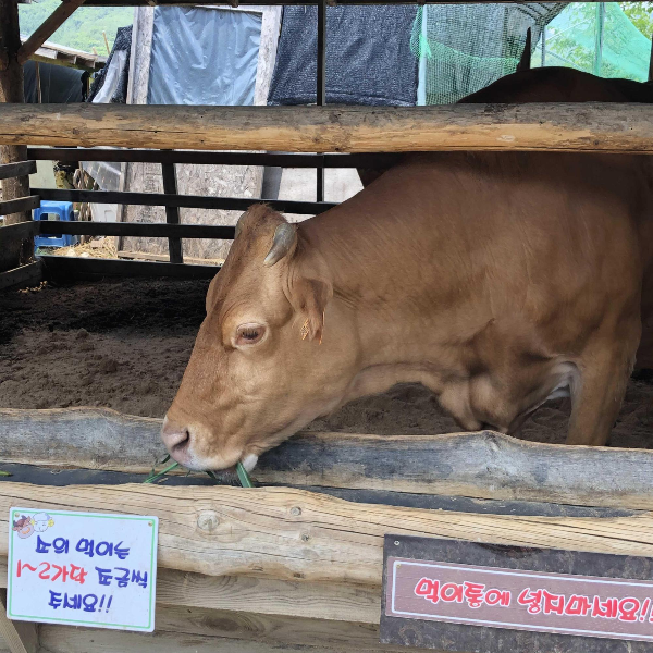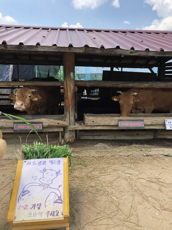 이 곳엔 한우 먹이주는 곳도 있네요 소는 예민할텐데 그래도 먹이주는걸 하나씩 받아먹더라구요