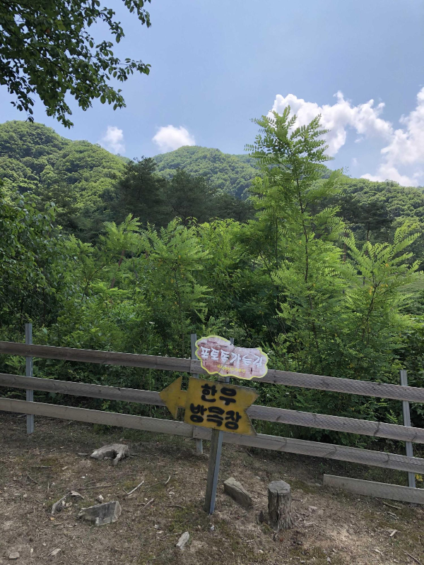 초입 부분에 이렇게 포토존 가는길 팻말이 있네요~ 한우 방목장도 있다고 하는군요 오홍