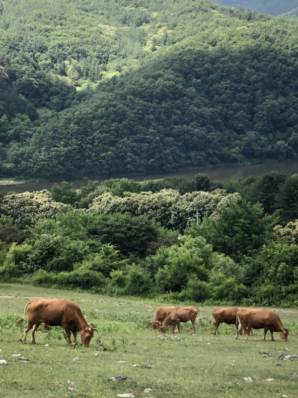 우측 담장 너머에는 한우들이 풀을 열심히 뜯어먹구 있어요