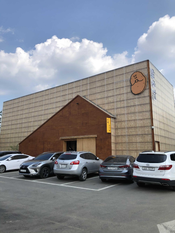 건물 외관도 감자밭이 연상될 것 같은 디자인이네요 ㅎㅎ 이렇게 건물 앞에 주차장, 골목 안쪽 주차장, 샘토 주차장
