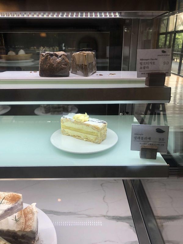밀레폴리에는 처음 보는군요 카스타드 크림과 코코아 크림을 사용했나 봅니다.