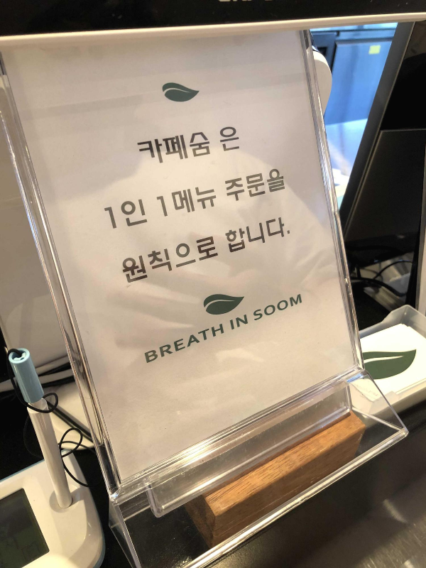 1인 1메뉴를 원칙으로 하고 있으며 드신 음료는 반납 부탁드린다고 합니다