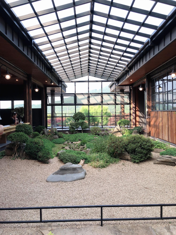 그리고 이 정원이 보이게 길게 테이블이 있는데 저는 그곳에 앉았어요~